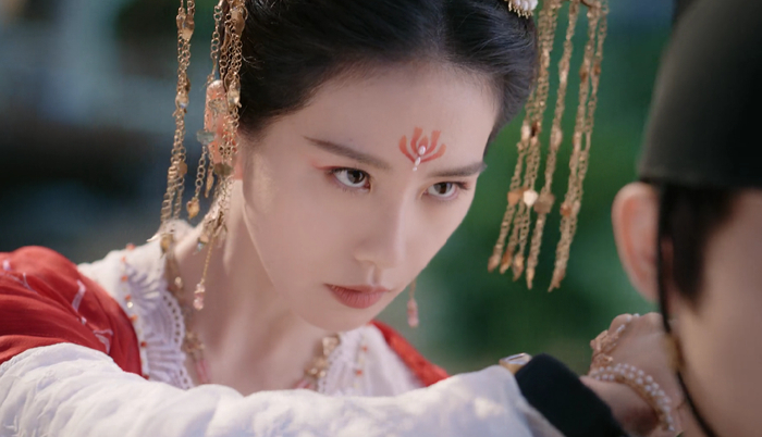 不过刘诗诗的眼神戏还是有所欠缺,剧中刘诗诗面对同伴突然起身行刺的紧张场面,刘诗诗的眼神并没表现出太多的起伏。