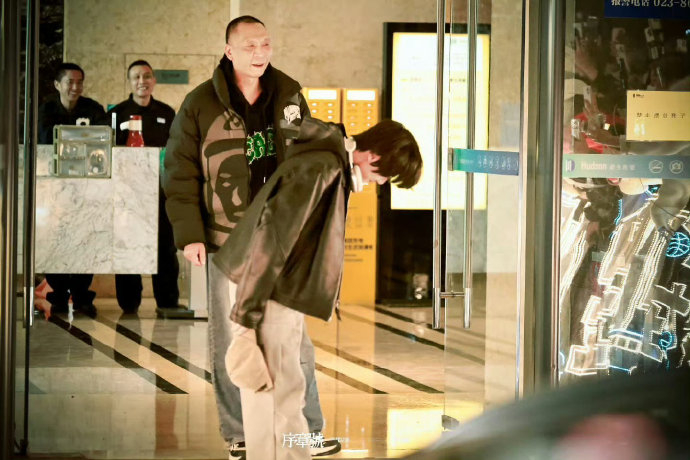 2. 郑重的空间致意:他先在大厅内朝聚集的粉丝鞠躬,随后走到室外,分别面向正门、左侧街道及右侧便利店三个方向的粉丝群,逐一完成九十度深躬。每个弯腰动作持续3-4秒,全程共计六次鞠躬。工作人员张鹏紧随其后,面带微笑的默许姿态被镜头捕捉,无声印证此举已获公司特批。