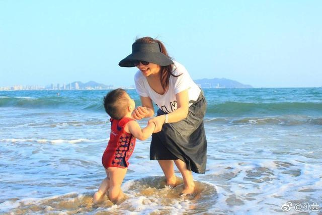 孙茜还握着儿子的手臂,让儿子在沙滩上行走,小家伙十分兴奋的超前迈步,这样的景象让人看了十分的有幸福感。孙茜将工作和家庭都顾的十分的周全,不仅事业上稳步上升,还经常分享和儿子相处的点点滴滴,跟槿汐姑姑的形象真的是没差别。