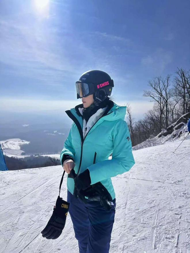 照片中的张馨予装备齐全,滑雪服不止一套,每一身造型都很惊艳。比如她戴着头盔,穿着绿色羽绒服,下身搭配了一件休闲裤子,整个人看着高级又洋气,为了将保暖做到极致,手套自然少不了。