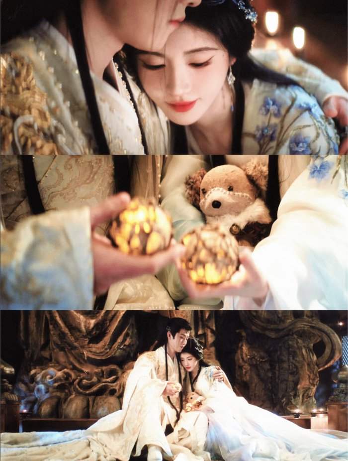而男主寄灵的剧情反转同样惨烈。他一直以为自己是独立的个体,结局却揭开他只是龙神制造的一个替身木偶。最让人泪目的是那个贯穿全剧的“阿呜玩偶”——原来这个破旧的布偶,其实是寄灵灵智的化身。早在百年前,他就已经在默默守护着被囚禁的露芜衣。当真相大白时,寄灵选择了自爆龙神真身献祭神魂,以此消除九婴的核心力量。