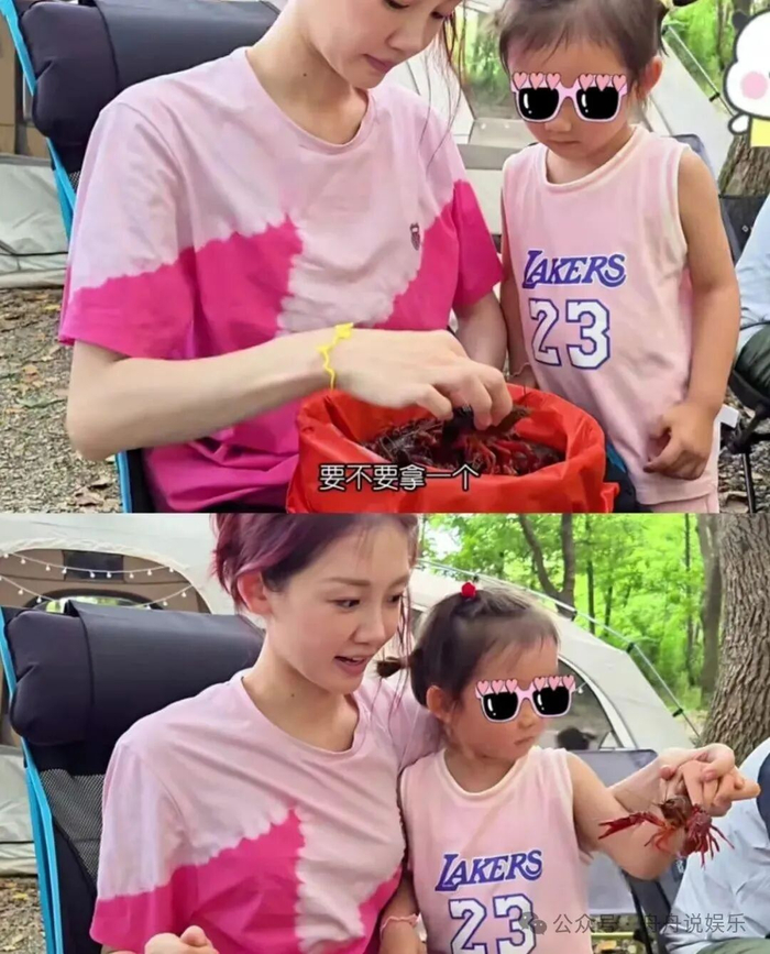 其中,小龙虾的出现成功吸引了女儿的注意。为了满足女儿的好奇心,苗苗徒手抓住一只小龙虾,准备交到女儿手上。
