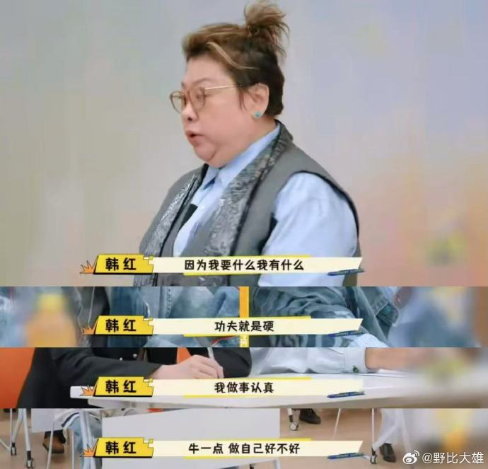 不同于其他导师的综艺化表现,韩红始终以"选音乐苗子"为目标。她含泪表示:"我是来对你们负责任的,不是来玩的",这种使命感加剧了她的焦虑。