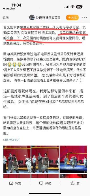 据舆情分析,超八成观众认为该奖项"实至名归",肯定剧目质量与张嘉元的努力。其作为新人演员的潜力被视为"演艺圈黑马",尤其在台词功底和舞台感染力方面进步显著。