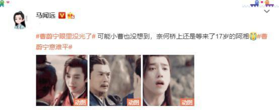 曹蔚宁的扮演者马闻远也在社交平台发文,估计小曹也没想到奈何桥上会等到17岁的阿湘。
