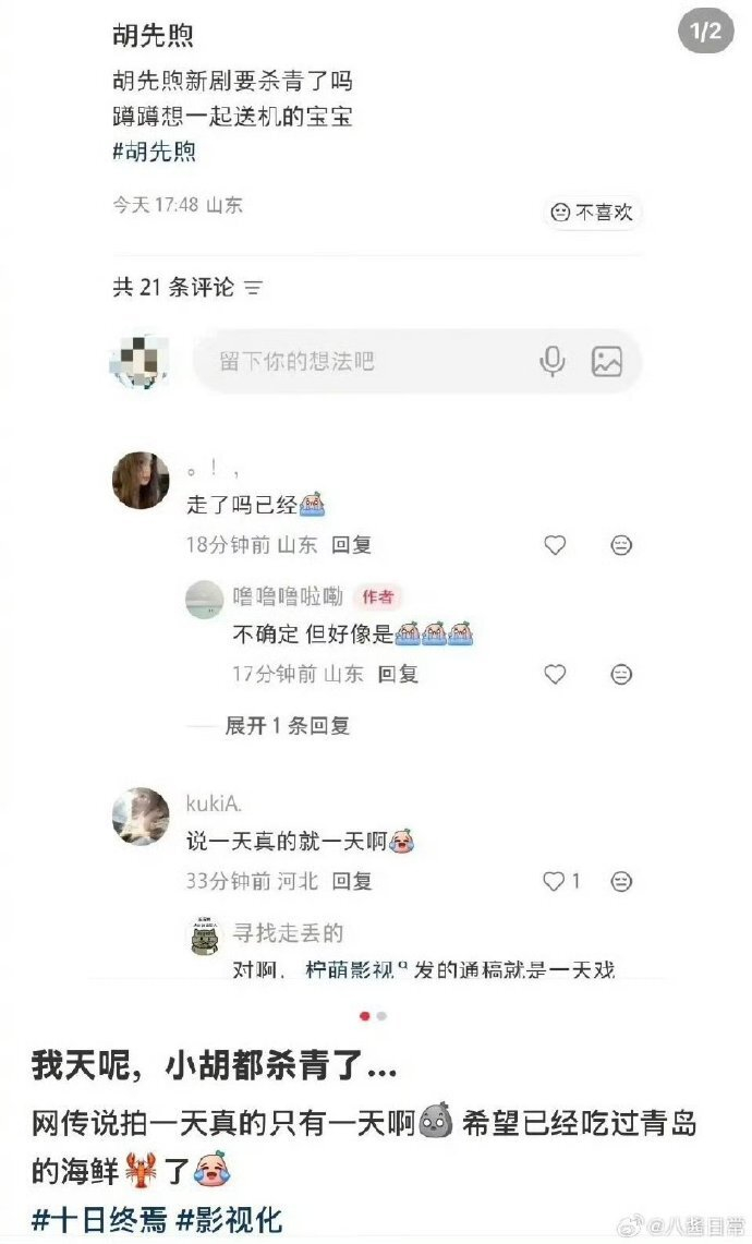 消息曝光后,舆论呈现明显两极。超八成书粉认可胡先煦的造型与角色适配度,话题 # 胡先煦十日终焉狼尾发型 #*单日阅读量破亿,不少观众称赞剧组尊重原著节奏,没有随意魔改加戏。与此同时,不少网友也玩梗调侃,称其 “落地成盒”“史上最快杀青主演”,戏称是专程进组拍摄 “爆头名场面”。