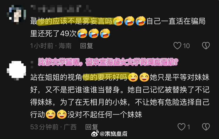 一群外人对着月鳞姐妹俩指手画脚、、说白了有些人就是看不惯姐妹情深,鞠婧祎演得挺很有带入感,心疼姐姐那股破碎感非常好品,非得用对比苦难那套把两个好好的角色对立起来,暗戳戳的踩一捧一,这心思别搬到月鳞来了好不🙄