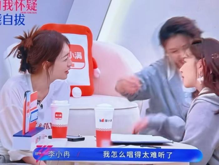 这记“直球”让李小冉瞬间清醒,她惊讶回应:“我这次才知道我唱得这么难听!平时是不是太高看自己了?”阚清子进一步解释道,有一类人就是听不出自己跑调,但特别快乐。李小冉立刻精准接梗:“就是耳朵不好是不是?”、“不是,好像是缺一个什么东西?”、“就是缺心眼呗!”她还笑着“控诉”队友:“你非要逼我自己说出来!”这段自嘲式对话,因其坦诚的尴尬和幽默的化解方式迅速出圈。