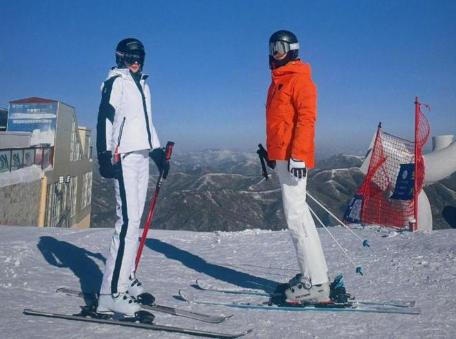这不是何捷第一次教老婆滑雪了,两人目前有了新的关系,即教练和学员。