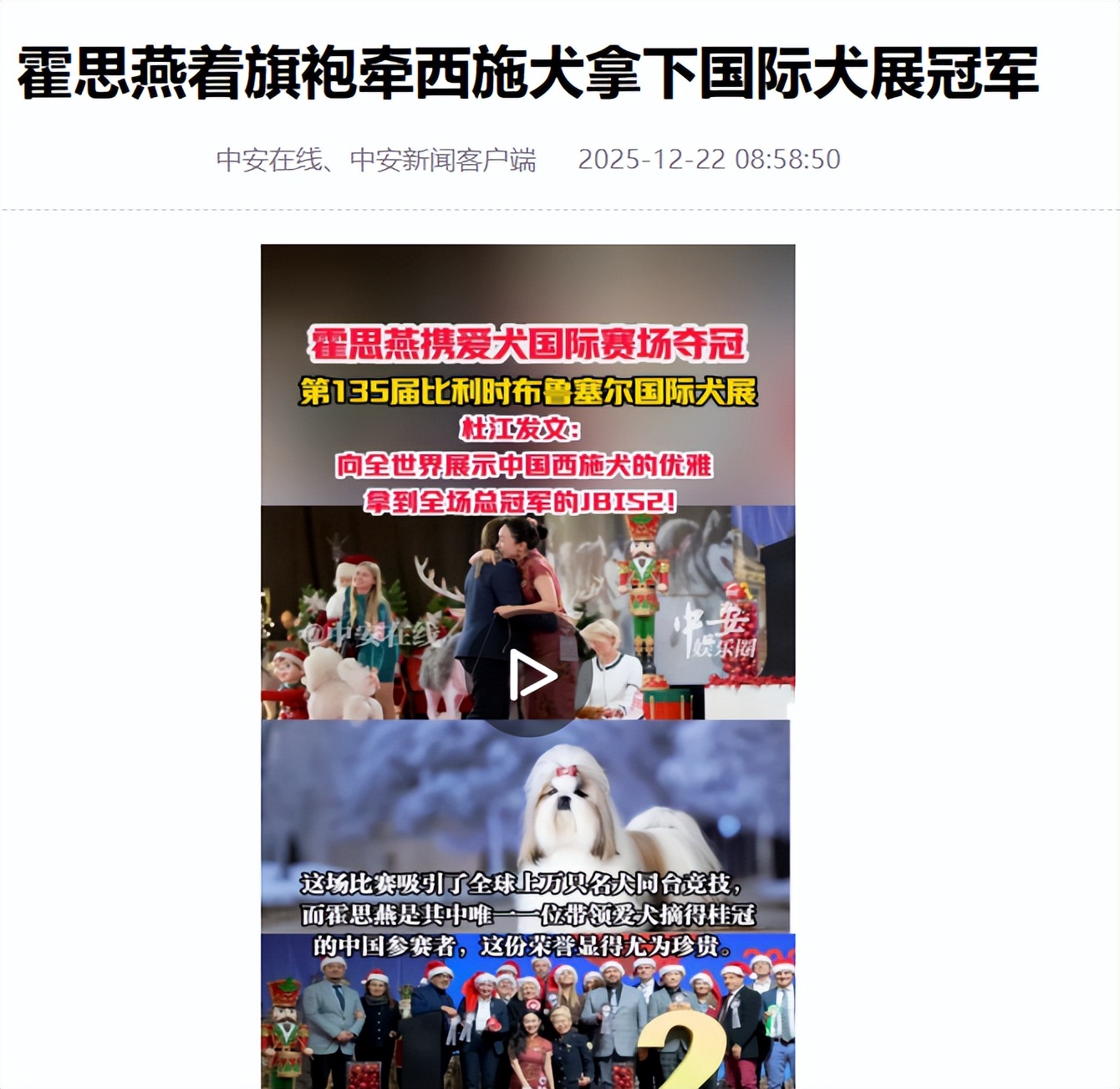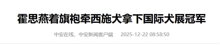 中安在线2025-12-22霍思燕着旗袍牵西施犬拿下国际犬展冠军