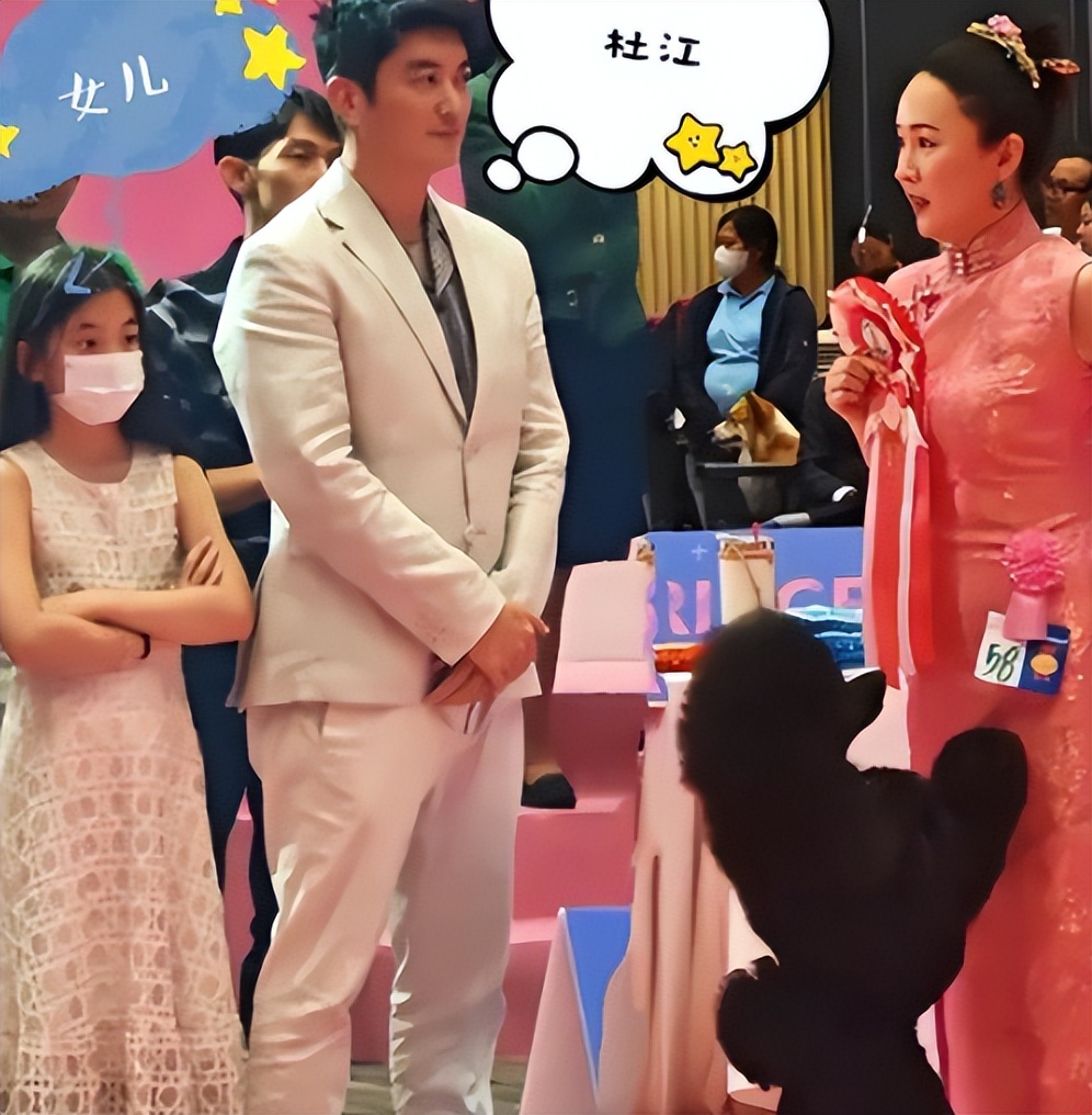 这次泰国犬展,有人拍到这个小女孩站在杜江身边,眉眼和嗯哼高度相似,身高都快到杜江肩膀了。