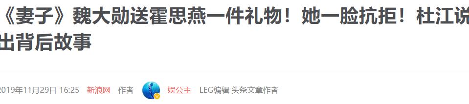 新浪网2019-11-29《妻子》魏大勋送霍思燕一件礼物!她一脸抗拒!杜江说出背后故事