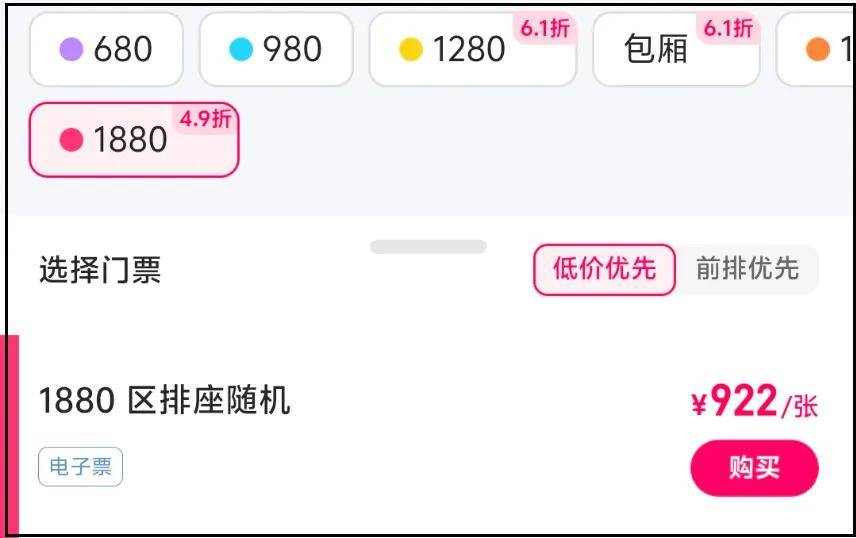 甚至还有票务承诺不管1880、1580还是1280,统统只要700块,相当于打了3.7折。