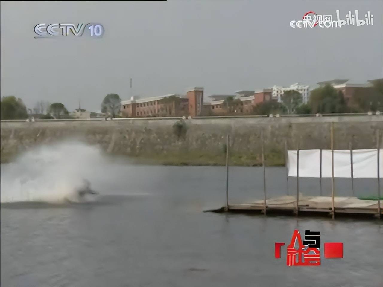 而他也没有放弃过成为专业赛车手的梦想,为了能更好地做自我宣传,他决定利用央视采访的机会,做“摩托车水上漂行”表演。