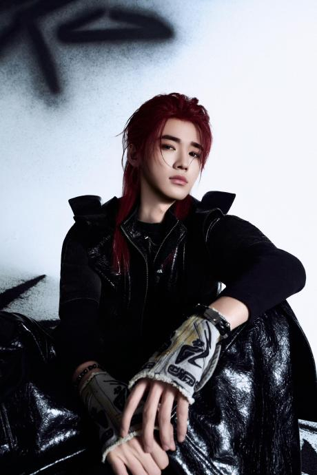 在《刺》的单人概念大片与MV中,宋亚轩的酒红狼尾长发与歌曲暗黑、叛逆的基调形成共振。它不仅是色彩冲击,更是角色塑造的关键——亮面机能皮革马甲、做旧涂鸦手套、冷冽金属配饰构建出“废土机械风”的凌厉战场,而红发恰似点燃战意的火焰,将“先锋战士”的颠覆形象具象化。官方文案“向真我处,挣脱束缚”直指主题,红发作为最外显的视觉符号,象征着对既定规则的挑战与内在张力的爆发。
