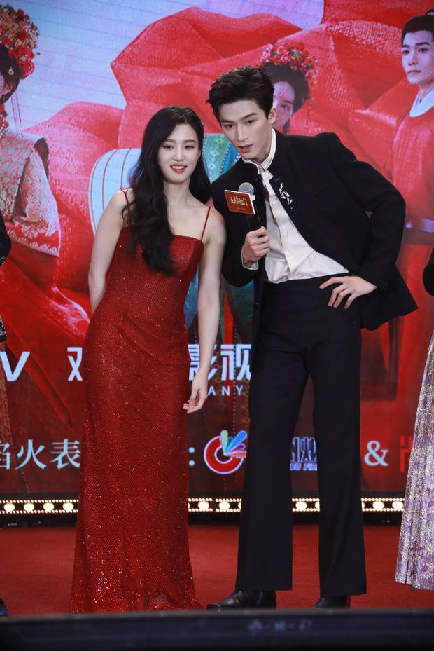 当天主演们发喜糖、比心拍照,王星越单手抱卢昱晓。