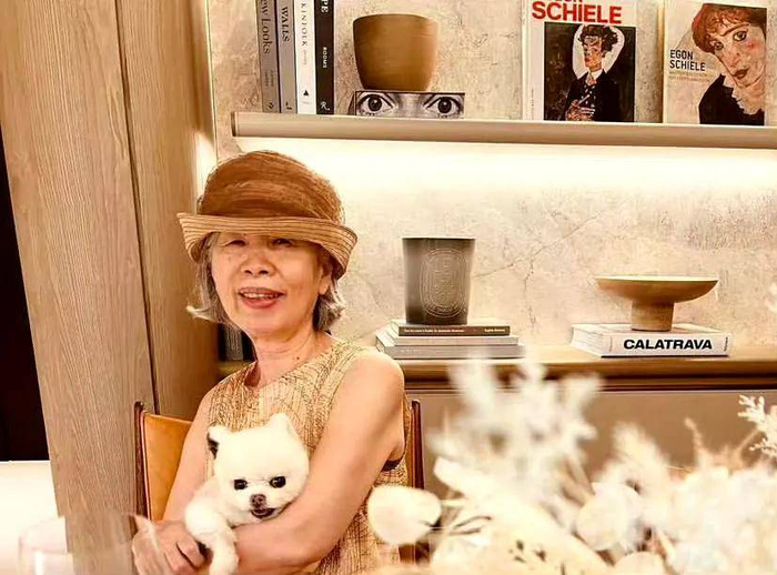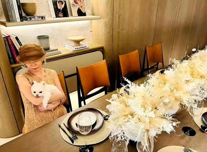 看了周杰伦母亲的照片,真心觉得他们母子俩长得简直是一模一样。照片里的周妈妈戴着一顶时髦的帽子,穿着一件简洁的短袖,怀里抱着一只毛茸茸的小白狗。拍摄地点看起来应该是在家中,整体布置非常讲究。光是那张大餐桌就让人觉得气派,足够好几个人一起坐下来吃饭。桌上虽然只有一些餐具,可能是刚吃过饭不久,给人一种温馨又生活化的感觉。