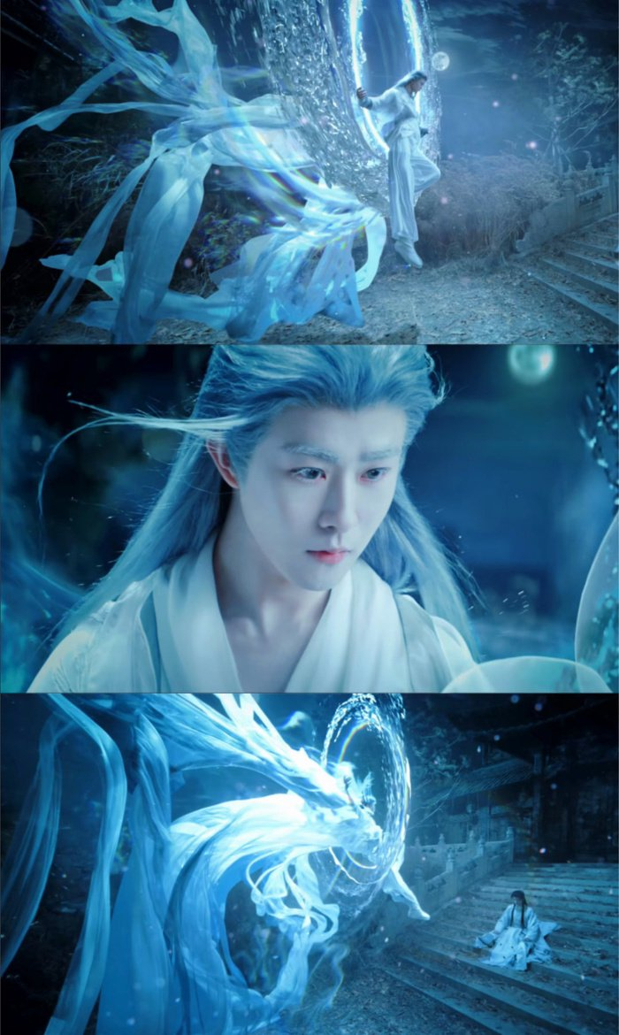 而男主寄灵的剧情反转同样惨烈。他一直以为自己是独立的个体,结局却揭开他只是龙神制造的一个替身木偶。最让人泪目的是那个贯穿全剧的“阿呜玩偶”——原来这个破旧的布偶,其实是寄灵灵智的化身。早在百年前,他就已经在默默守护着被囚禁的露芜衣。当真相大白时,寄灵选择了自爆龙神真身献祭神魂,以此消除九婴的核心力量。