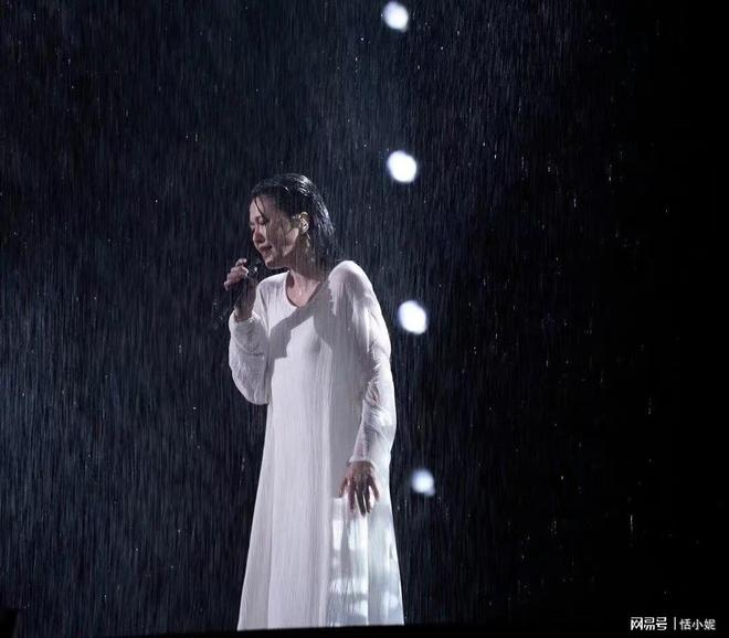 唱高音时,后面的光配合闪耀,间奏时,谭维维扔下披风,穿着一件素色长袍,光着脚走上二层舞台。随着高音四起,舞台开始燃起火光,火光中又下起雨来,越下越大熄灭了火。谭维维在大雨中放声大唱,湿透了全身。那场面很震撼,最后倒在水泊中,很行为艺术~