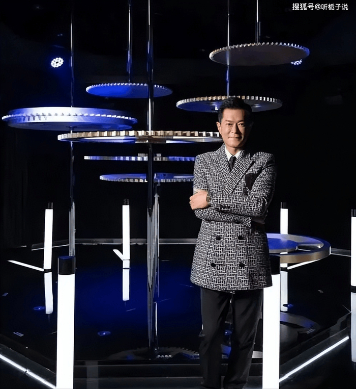 古天乐穿了一件黑色的高领内搭,浅灰色的西装外套,搭配黑色的裤子,又修身又减龄,不管是容颜还是身材,他保持的都很好。