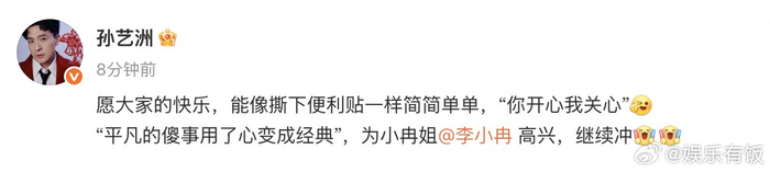 #孙艺洲用便利贴歌词回应李小冉##孙艺洲模仿完李小冉的求生欲# 孙艺洲模仿完李小冉的《心愿便利贴》舞台后来为小冉打call的哈哈,小冉勇敢飞,快乐永不停