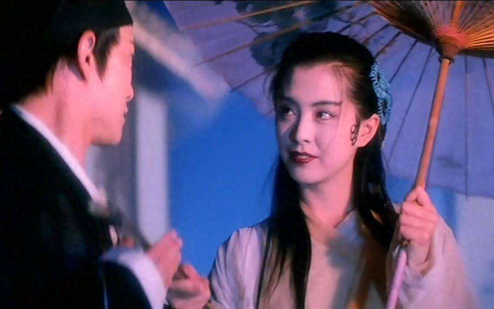 王祖贤1993年版本的《青蛇》中的白素贞,完全是一次美学的突破,充满了颠覆性。徐克为这个角色赋予了全新的内涵,褪去了传统的贤淑光环,带着一丝妖异的气息,还原了千年蛇妖最本真的魅惑。她以昆曲女旦的盘发造型出场,湿发贴面时的慵懒,腰肢摇曳之间散发出的原始野性,每一个细微的表情都在诉说着妖的致命吸引力。王祖贤的表演极具层次感,眼神中既有洞察世情的戏谑,也有沉溺情感后的痴缠。从模仿人类情感的疏离,到深陷其中的迷离,她把情与欲的挣扎演绎得入木三分。这一版本的白素贞并不追求完美,反而以一种浓烈的破碎感和生命力,为蛇妖形象开辟了全新的维度。