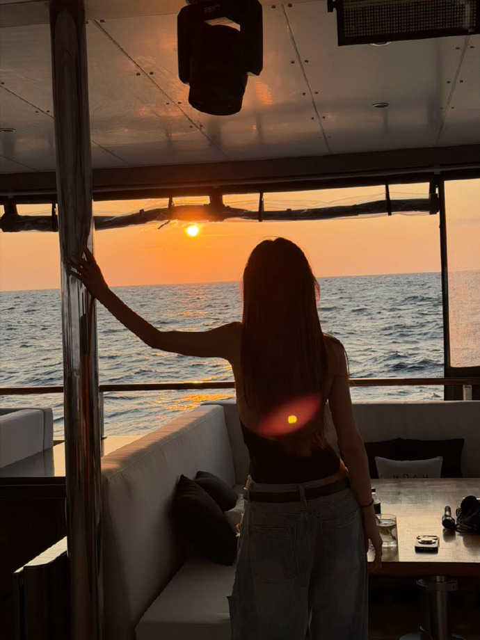 她或倚着栏杆放空,或侧躺在甲板上望向远方,发丝被海风拂乱,妆容在暖光下晕出柔和的轮廓。沈梦辰和杜海涛熬过了九年恋爱长跑,从青涩的官宣到低调领证,没有盛大的排场,却有彼此陪伴的安稳。她的慵懒里,是卸下所有防备的松弛,就像她在杜海涛面前,可以不用时刻扮演 “完美女友”,只需做自在的自己。