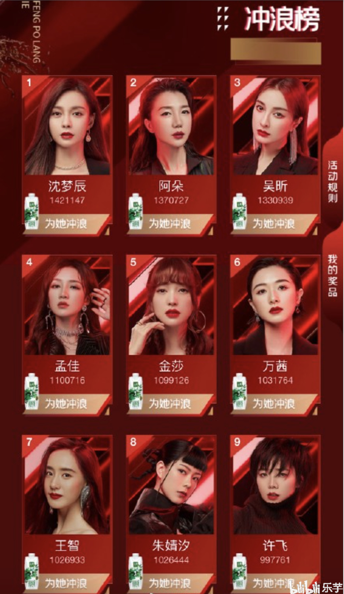 二组 :万茜、张雨绮、李斯丹妮、张含韵、金晨、黄龄、伊能静