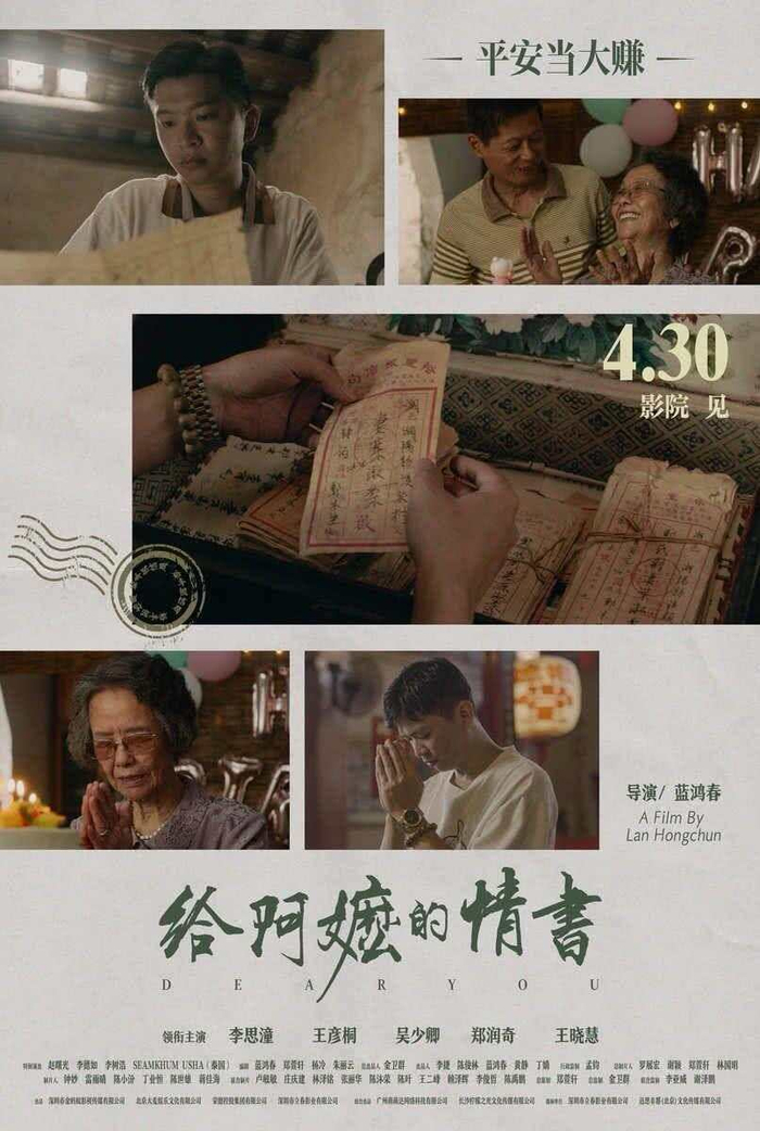继《爸,我一定行的》《带你去见我妈》后,潮汕籍导演蓝鸿春执导的第三部本土电影《给阿嬷的情书》正式官宣定档。影片将于4月30日全国上映,强势进军五一档期。同日,片方发布“寻找富豪阿公”版定档预告与海报,揭开一段跨越半世纪、横跨中泰两地的侨批往事。