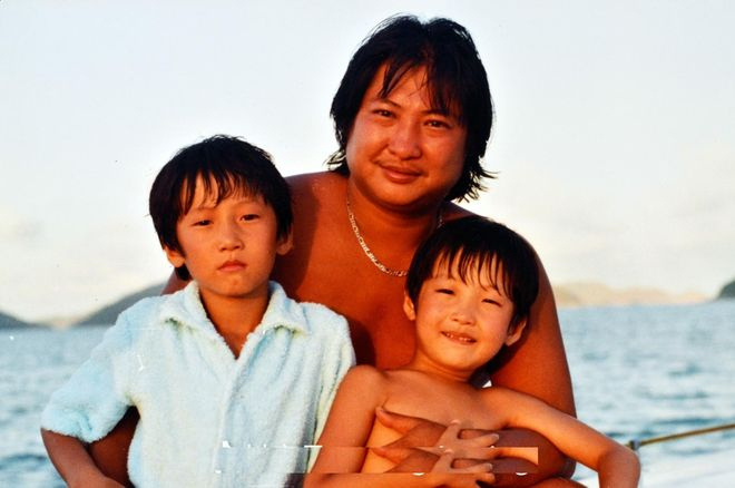 另外一张照片之中,洪金宝抱着两个儿子在海边度假。镜头之中的洪金宝感觉像是一个杀猪的农村屠夫,戴着一条金项链感觉挺霸气的。