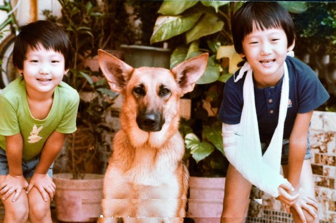 照片之中的父亲洪金宝当时还是很帅气的,而且当时的洪天明还是一个可爱的小孩子。