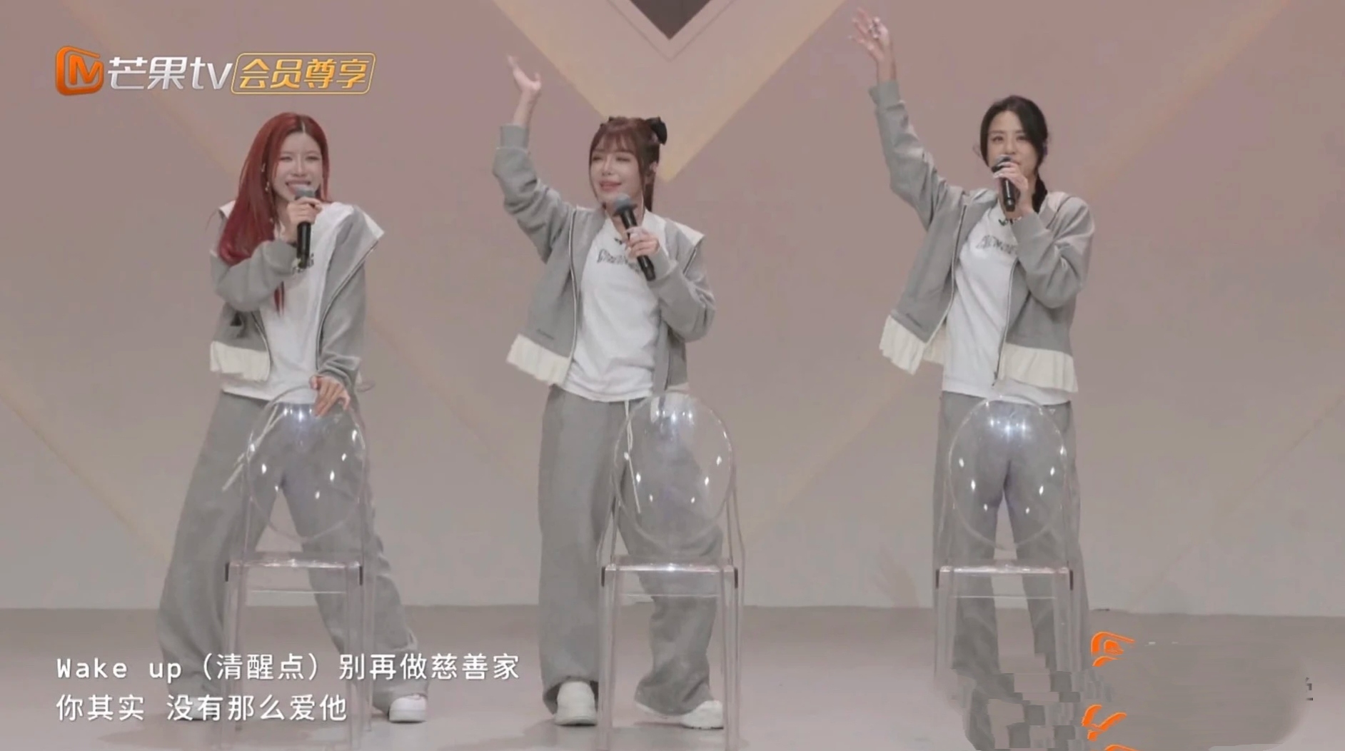 幸好她们组的万千惠赶紧找补说:“因为我们是英文歌,再不上去就忘记怎么读了。”