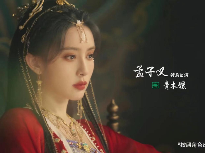 孟子义扮演青木媛,持有法宝如意,这次装扮类似于花魁,红色衣裙有被惊艳到。