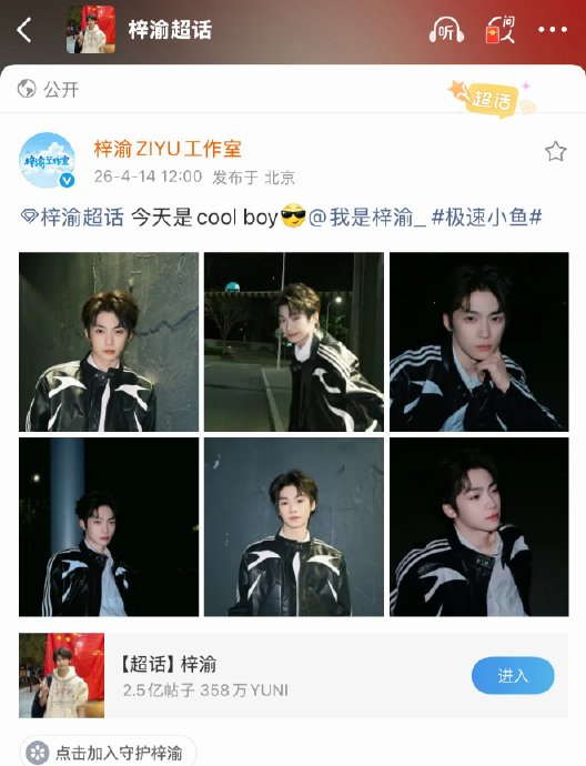 2026年4月14日,梓渝工作室联合多家娱乐平台同步释出一组以黑色皮衣为主题的"Cool Boy"六宫格写真,凌厉的翻领设计与露额造型瞬间引爆网络,这组突破性的形象大片并非独立策划,而是紧密联动其多领域发展的关键节点。
