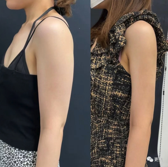 吸脂可以让整个胳膊型态更均匀,整个上臂缩一圈,靠近肩膀的部分也会涉及,虎背熊腰感消失,可以大胆穿紧身上衣和无袖衣服。
