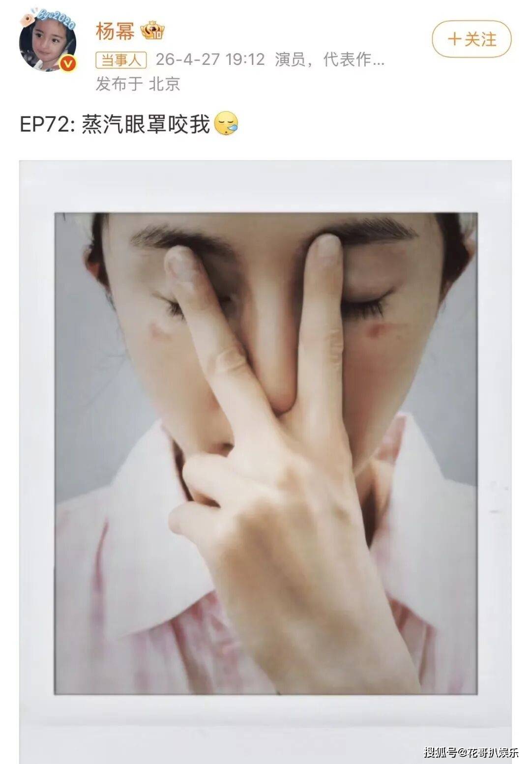 看来明星有时候也会买到假冒伪劣的产品啊。近日杨幂一张随手分享的自拍,说自己不小心被蒸汽眼罩烫伤了,照片能看到她眼周部位有着十分明显的泛红伤痕,显然是被蒸汽眼罩低温烫伤了,看样子伤得还不轻。