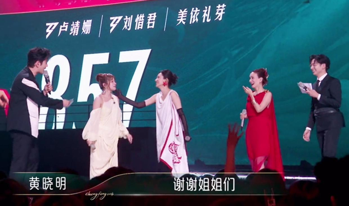 看得出3位姐姐都很卖力气,舞蹈部分很整齐,rap也很洗脑。实力大vocal黄丽玲还是唱功更突出的一位,和其他两位姐姐形成鲜明的对比。由于整个舞台很大,3个人明显没有把气氛完全顶起来,加上3位姐姐本身人气都不高,最后拿到了803票,成绩不是很理想。