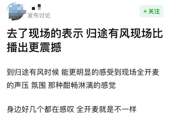 值得注意的是,在反向修音的前提下,《归途有风》依旧很炸场,足以说明这个舞台经得起推敲。从网络流传出的未修音版本来看,《归途有风》现场视听体验比播出版本更震撼,听得人酣畅淋漓。
