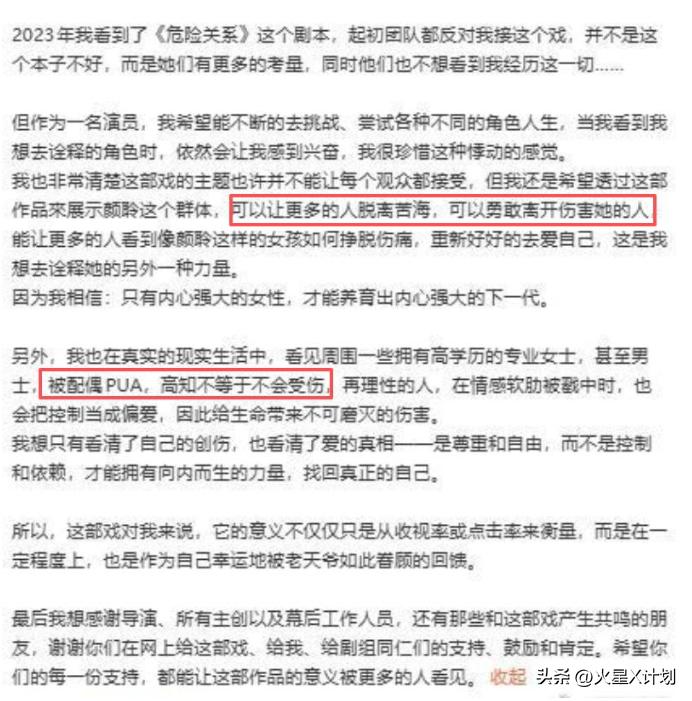 导演薛晓路也在评论区留言:“谢谢你曾坚定地选择了《危险关系》,并拿出了所有的专业、气力、血肉给到我。”