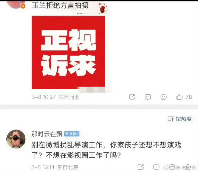 3月8日,账号“那时云在飘”在导演杨阳微博评论区威胁粉丝:“别扰乱导演工作,你家孩子还想不想演戏了?不想在影视圈工作了吗?”该账号被证实与杨阳工作室关联密切(IP属地相同、历史互动频繁),且点赞过杨紫黑稿。其言论被解读为对杨紫职业生涯的隐性威胁,引发公众对职场霸凌的质疑。
