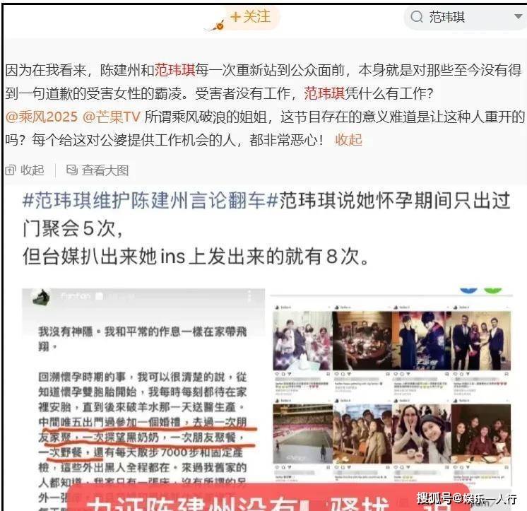 但要说争议最大、路人缘最崩盘的,还得是范玮琪。节目官宣阵容时,她的名字就直接引发了抵制浪潮,评论区被“有她就不看”刷屏。网友把她多年的“黑历史”做成时间线:从“哈佛学霸”人设被质疑造假,到与昔日闺蜜张韶涵的“插刀门”,最致命的是2023年其丈夫陈建州被多名女性指控性骚扰时,范玮琪选择坚定站在丈夫一边,甚至联合起诉指控者。这种“与受害者为敌”的立场,让她在内地的观众缘彻底崩塌。这次上《浪姐7》,被很多人视为她内地事业的“最后一搏”,但显然,互联网是有记忆的。
