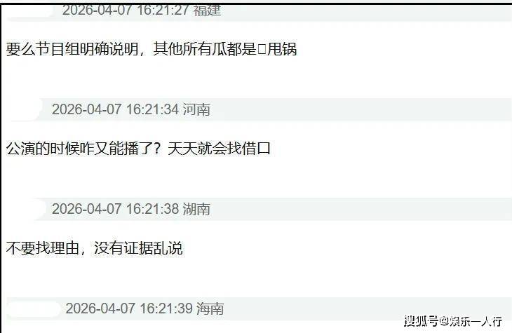 当然,这个“嘉宾被举报导致停播”的爆料,来源并不可靠,很多网友认为这更像是节目组自己出了问题,在甩锅给艺人。因为取消直播的根本原因,很可能就出在节目组自己混乱的制作上。首播的“初见面”直播就被全网吐槽节奏拖沓、现场像菜市场,连参赛的奥运冠军王濛都当场喊话“太磨叽了!”初舞台直播更是事故频发,票数不透明引发“黑幕”质疑,节目组被迫临时改成“全员晋级”,赛制公信力荡然无存。