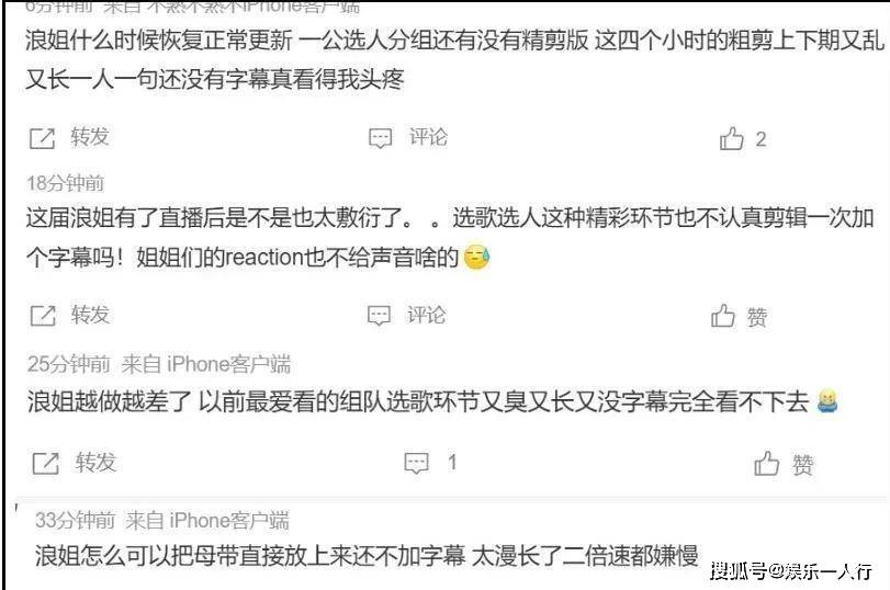 1. **网友1**:这节目真是脑白金啊,连直播都能取消,会员充什么充啊!,2. **网友2**:节目组的操作简直离谱,连续两次取消直播,观众都当了傻子!,3. **网友3**:这波操作堪比《创造101》,只不过这次是更大级别的失败。,4. **网友4**:取消直播直接说“风清景明”,简直是对观众的侮辱!,5. **网友5**:节目组连直播都不会做对,录播效果更差,真是无语。,6. **网友6**:这次《浪姐7》彻底让人看不起,观众韭菜钱都白花了。,7. **网友7**:节目组的诚信度在这次事件中直接掉到了零。,8. **网友8**:观众的愤怒是有道理的,节目组应该认真反思。,9. **网友9**:取消直播这种操作,简直是自我打脸。,10. **网友10**:看来芒果TV的制作团队需要加强,别再让观众等白。,这些评论生动地反映了网友对《浪姐7》直播取消事件的不满和愤怒,也揭示了节目组在制作和管理上的显著不足。1. **吃瓜小萌**:这节目真是在“直播”啊,简直比电视剧剧情更离谱!从主持人齐思钧的“即兴表演”到嘉宾的“版权风波”,简直是“版权组合爆表”,说不定下一波是“姐姐跳舞台”被起诉了!,2. **大雾**:节目组这是在“直播”吗?看起来更像是“录播”,演员都能演得这么真实,节目组的“直播”就这么一拍两定,观众当成了他们的“试镜”!,3. **小橘子不甜**:听说芒果TV的“直播”竟然是“录播”,这波操作简直是“吃软饭”,VIP观众当场“退会员”,节目组的“全程直播”卖点也没了!,4. **白月光**:这节目真是“风清景明”,取消直播直接改“录播”,观众的“热情”也一夜没了,节目组的“直播特权”就这么“烂掉”了!,5. **吃瓜大师**:从“风清景明”到“取消直播”,节目组的操作都像在“演戏”,观众当场“集体退钱”,这波“吃瓜”可真是“集群”!,6. **小宇宙**:节目组的“全程直播”就这么一拍两定,VIP观众当场“智商暴跌”,节目组的“直播”就这么“烂掉”了!,7. **吃瓜侠**:这节目真是“直播”啊,观众当场“退钱”,节目组的信誉直接“翻车”,这波“吃瓜”真是“集群”!,8. **月牙小糖**:节目组的“直播”就这么一拍两定,观众当场“集体退钱”,节目组的“全程直播”卖点也没了!,9. **吃瓜小白**:从“风清景明”到“取消直播”,节目组的操作都像在“演戏”,观众当场“集体退钱”,这波“吃瓜”可真是“集群”!,10. **大吃瓜**:节目组的“全程直播”就这么一拍两定,VIP观众当场“智商暴跌”,节目组的“直播”就这么“烂掉”了!