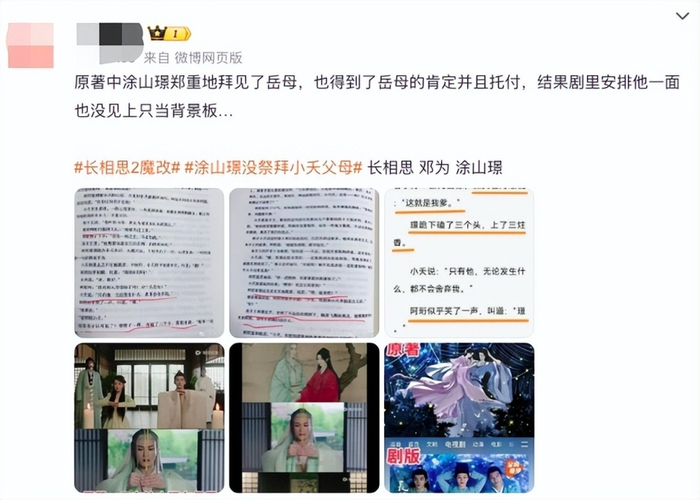 以#杨紫坚持留下桃林认母剧情#热搜为例,它所代表的不只是小夭与自我身世、幼时经历的和解,也是官配CP涂山璟的高光时刻。但是在剧中这一场景不仅被处理的不够浓重,桃林、沙漠变小木屋,“32片桃花”的特效都被网友吐槽,主演中也被强行加入了玱玹的部分,“三人行”也削弱了官配CP的情感浓度。