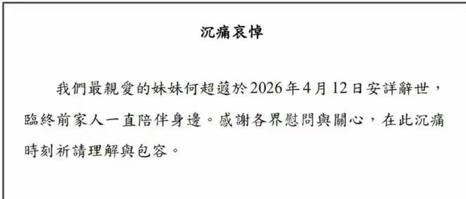 添麻烦。这次她离世,二房所有家人都陪在她身边,也算走得安稳没有遗憾。二房这几个孩子,这么多年从来没传出过互相倾轧争家产的新闻,彼此之间感情一直很深厚,最后时刻一家人守在身边,也算是给了她最大的安慰。好多网友知道消息之后都感慨,60岁真的太年轻了,一辈子无儿无女,都献给了工作和公益,走的时候这么多亲人陪着,也算圆满了。
