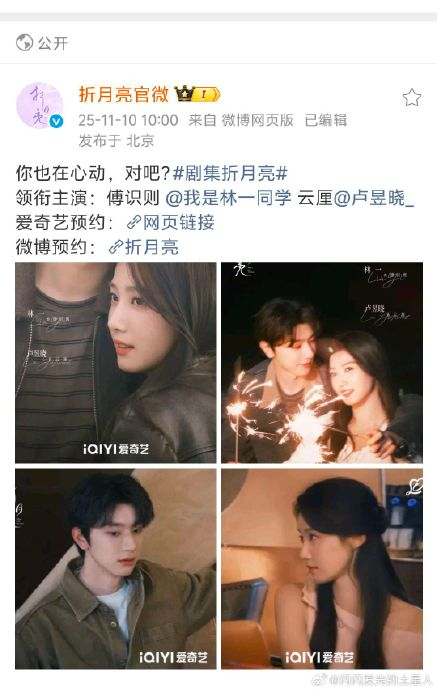 林一与卢昱晓的共创证明:Z世代观众更渴望真实、有参与感的互动。当“抽象”不再是小众圈层梗,而成为大众情绪入口,《折月亮》已借这场反套路的宣传实验,将演员特质、剧集气质与用户兴趣精准缝合——娱乐至上的流量时代,真诚比精致更能折服人心。