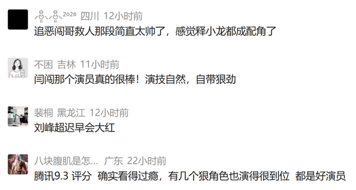 “闫闯那个演员真的很棒!演技自然,自带狠劲。”