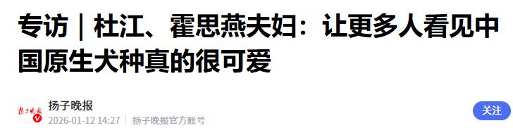扬子晚报2026-01-12杜江、霍思燕夫妇:让更多人看见中国原生犬种真的很可爱