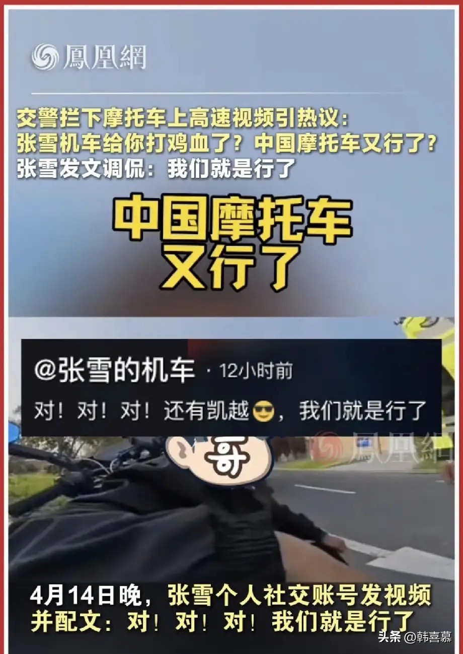 最近,一则新闻引起网友热议,一位交警拦下在高速上的摩托车,称“张雪机车是不是给你打鸡血了”。