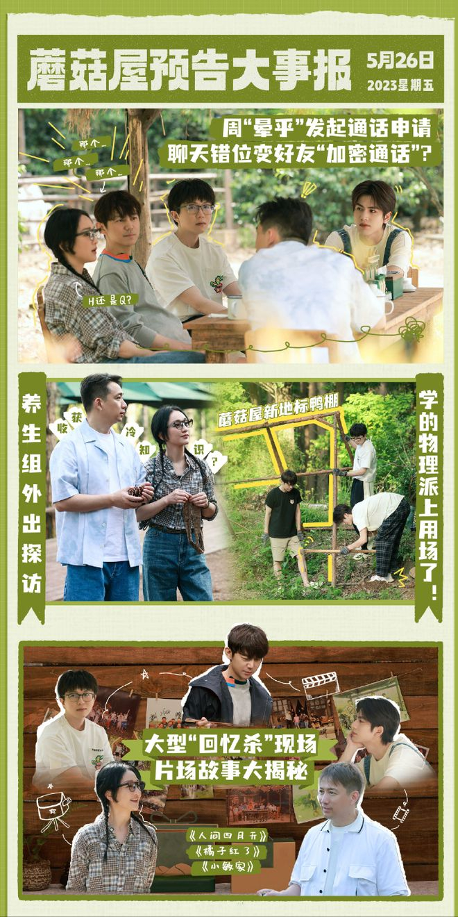 另外一边,蘑菇屋里的何炅,张凌赫,毛不易,正在凉亭中,研究搭建鸭棚的视频。
